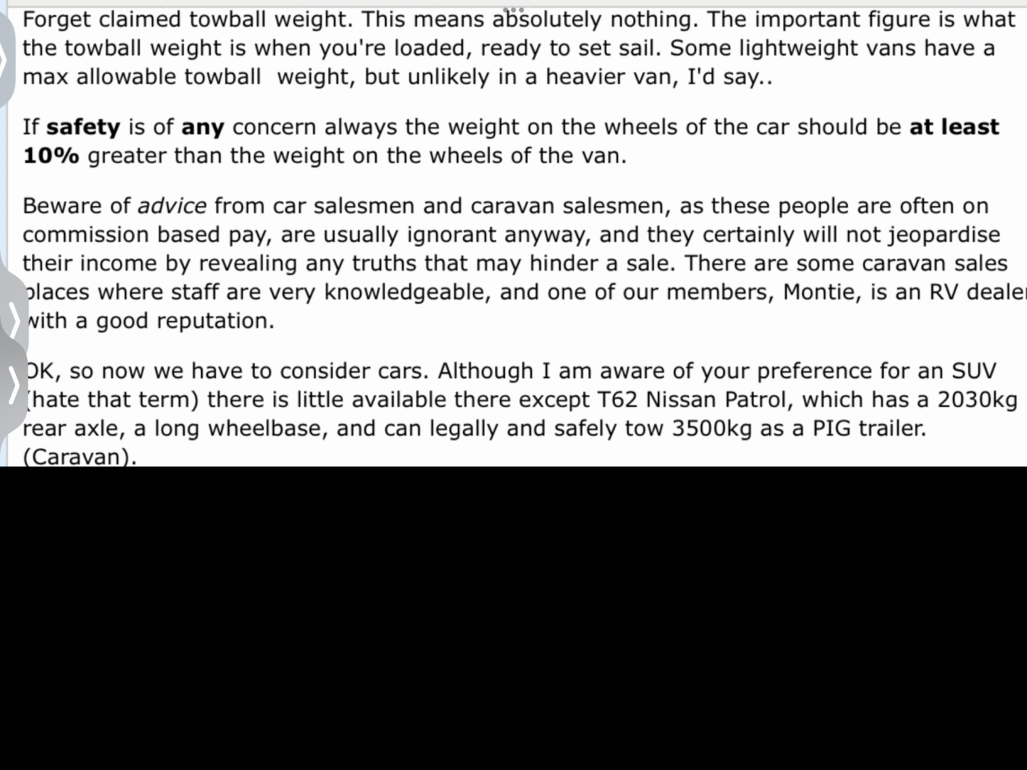 When looking at van specs, the quoted towball weight is a pretty useless figure. It is supposedly what it weighed when empty van left the factory. Add possessions and it will usually be a lot more.