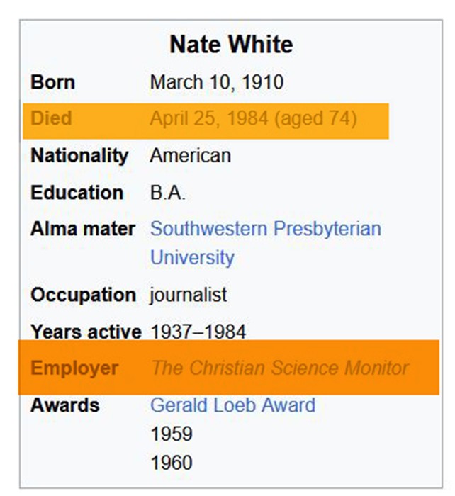 the Nate White being quoted is a British journo, still alive and kicking.