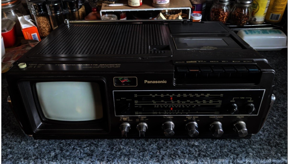 We carried firstly (early 90's) a 4-inch screen Combo unit (radio, tape deck, analogue TV) the size of a "Ghetto Blaster", we still use unit for radio and occasionally cassettes.