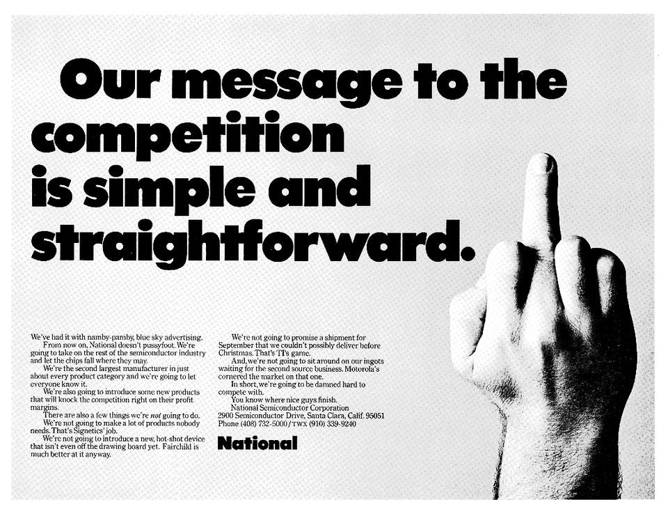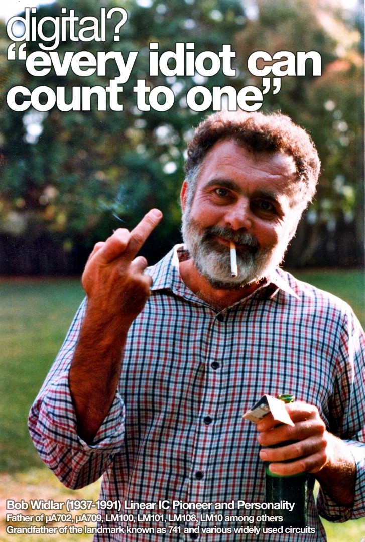 An ad by National Semiconductor, a manufacturer of ICs and semiconductors, and a poster of their analogue designer showing his opinion of digital designers.