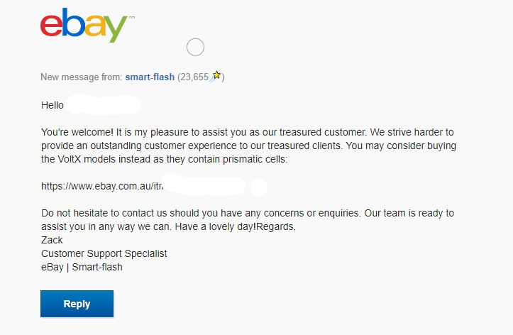 It was interesting to note that when I replied to the seller saying I wouldn't purchase due to the battery having pouch cells they suggested the voltx brand that has prismatic cells.