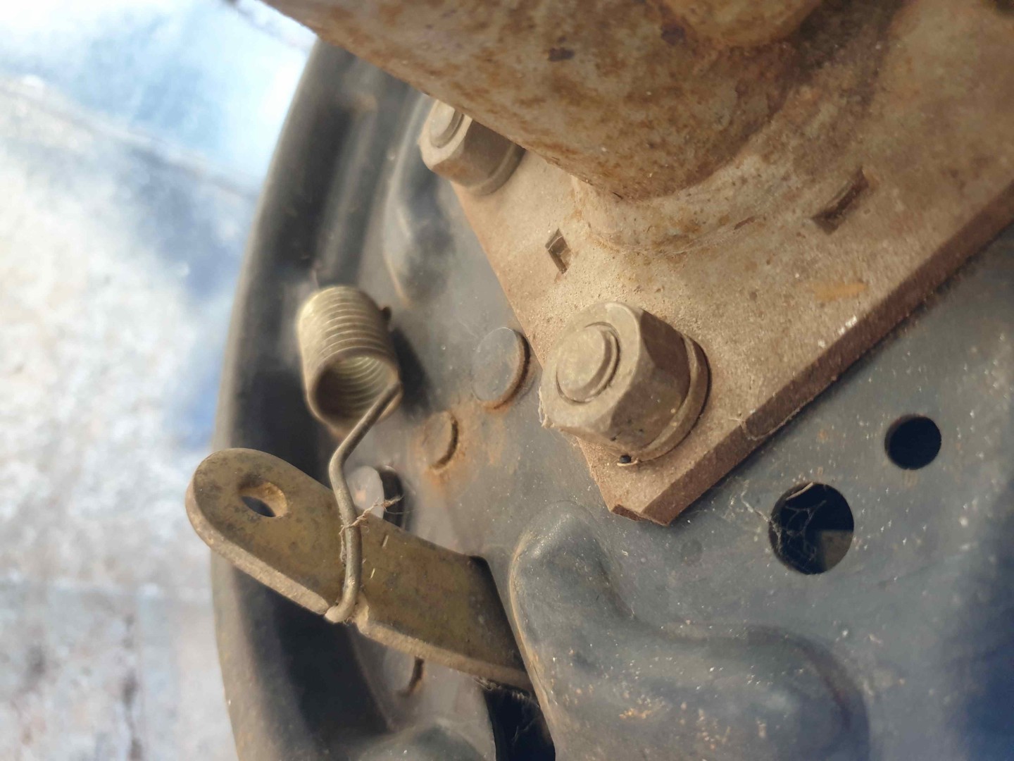 Re (The adjuster is opposite the handbrake lever) ie Just above where the spring goes into the metal body of the back plate, hope its a round rubber cover not a large metal rivet.