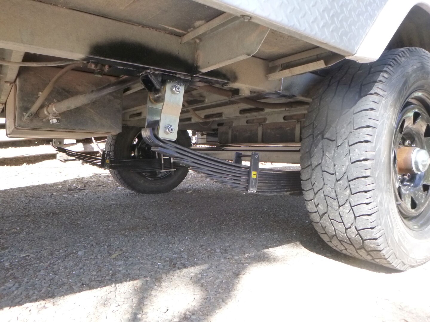 The suspension is a set of aftermarket rear springs designed for a 79 Landcruiser. They transformed the Jayco and parts are available almost anywhere.