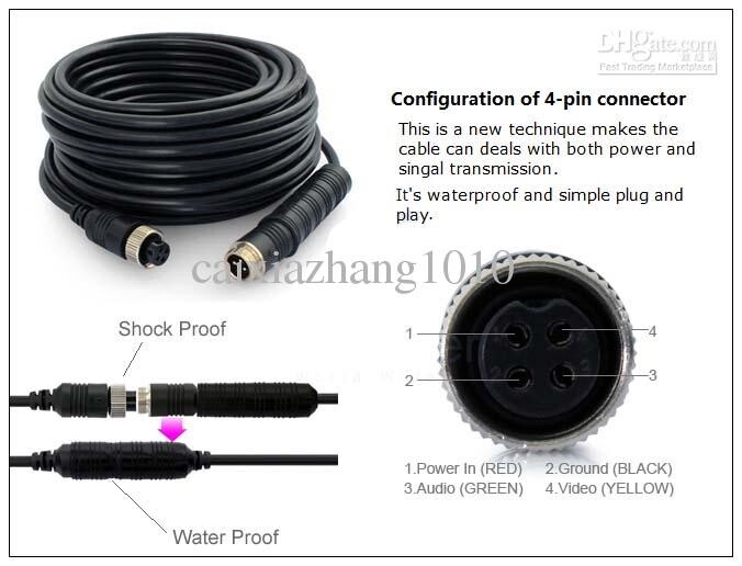 I fitted and connected the caravan reverse camera using 4 pin aviation plug/socket and 4 core insulated cable with Red/Black/Yellow/Green or White wiring.