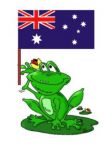 I'm not sure what frog that is either, but have just taken a picture (see below) of the Great Australian Frog (Frogus Australis Flagis) that I just found near our pond.