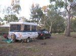 On one side of the road is a large area similar to a roadside rest area, but on the other side there is an area about a kilometre long with plenty or room to set up near the creek without being up the RRR's of the neighbours and far enough from the road for the all-night mining road-trains not to be a bother.