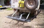If you follow Bill's plans as above and substitute the square tube (haymen reese fitment adapter) and replace that with a suitable straight section of steel (2" x 3/8") with a 50mm hole drilled into it then it will fit yours, use the 50mm hole that you already have in your step to bolt the new system on to it!