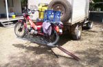 Hi Pauline. I have a rack that I made so I can carry my postie bike around on the back of my hilux 4wd. It has a fold down ramp which I drive my bike up to be tid down . it involves no lifting, and its great to have transport once you set up camp somewhere. If you want, I can send you some pics.H vae you got a towbar? Give us a bell if you want more help.Bill