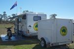 I initially transported the scooter in the back of the MH .. but once I chose to carry spare fuel and water, I decided to get a trailer made which now also carries the scooter.