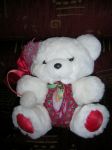 My sewing skills don't stretch to much more than sewing back the odd detached button, so I have been presented with a big challenge this week. Our bear, who will be 18 years old this Christmas, developed a failure in his chest fabric. Basically it has just given up the ghost, too many years and too much sun (although I am a lot more careful where he sits these days since his hat started to disintegrate. So off we went to Spotlight yesterday, I couldn't really think off anything except getting some sort of fabric and sticking a square patch across his chest. The lady was very helpful, and we came home with some nice Christmas fabric and very good advice. I got some paper and cut out an approximation of the whole fabric part, with a border spare for a turn-under. It took me 3 pieces of paper before I was happy I'd got it right (it helped when I used baking paper instead of computer paper, much more maneuverable), then I pinned the resulting 'pattern' to my fabric, took a few deep breaths and cut it out. Pinned the piece to the bear then carefully sewed it all the way around, tucking in the overlap as I went. It was quite tricky to sew, with his arms, legs and big boofy head sticking up in the way, but eventually I was done and, if I say so myself, he looks at least as good as new, if not better! He has a little bow tie which I cut off the old fabric and have sewed back on again. There's quite a bit of fabric left over, so maybe I'll get even bolder and try to repair his poor old hat, but that will have to wait for another day. I've attached before-and-after photos so you can admire my handiwork.