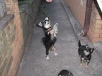 Agree with Sheba on all those product suggestions. We have Mum & Dad toy poodles(Jae Jae & Mindy),their two daughters(Bonnie & Bella) plus one large cat(Pussy by name). Plastic freezer bags a must for picking up what's dropped! Folding cage when hanging out washing etc. Soft toys. Rubber balls. Chewies,the lot. Gee,they're all restless to sleep with too. Just quickly on another note - it amazes me the gene trail. Mother lifts left rear leg to whatever - so does daughter,exactly the same. Dad loves catches balls,so does only one daughter.Mother hopeless at catching,so is one daughter. I get a real good laugh at all their little differences. And they do talk with different sounds too. Need an animal dictionary like they have for whales. Has anybody studied "dog-talk"?