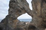 Narooma NSW a rock hole in the shape of Australian with montague Island barely visible in the distance