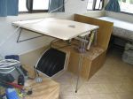Yes, I will. There was a single bed where the seating area should have been. So now he's taken it back to proper size, he could fit that little cupboard behind it. And he's raised the bed to allow for the porta loo, and put some ply along the front, where before it was a valance type thing.