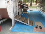 Hi, i have read all the comments on the steps most of which are quite good, but none would be of any use to me and i can't be the only one with leg dramas, weight dramas, etc etc. I am one of the lucky ones as my hubby is very handy with his hands and has made me what i reckon is the best set of steps. They have a removeable hand rail which i can't do without, the steps are wooden on a metal frame which hooks onto the bar that the original steps works off. It doesn't matter if you have to jack the up or let down a bit the angle will still work, will try to put some photos on.
