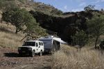 About 12km west of Kununurra on the way to Wyndham is a rest area where many travellers stay over-night. If you follow a track for 200m away from the highway from within this rest area, you will come to the Bat Cave. I reversed my van up there and stayed for a while. But it takes a bit of tenacity to get a caravan back there. It does wonders for your reversing skills.