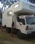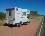 She's an old Millard Motor Home which was originally on a Mazda E200 petrol chassis, which alas was not very fuel efficient. Decided to change over to a Mazda T3500 deisel chassis. After obtaining electrical, gas and engineers certificates and completing new registration and insurance, she gaves us a dream run up the Stuart Highway.