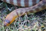 they are wooma and black headed pythons... they actually do live up this way in Tom Price WA, these ones belong to new found friends, they are the snake wranglers of the area and often have poisonous snakes around the place.. as for getting close, they let them loose in the yard and I followed them around with my camera... got down on the ground too which was a mistake... hahahaha I've been sneezing since (allergies to grass etc)... but the snakes were fine, I loved them!!!!