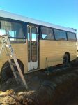 The colour is Colour Bond Wheat, Its be painted a few times in its service career it was originally Blue and then White she came from Toowoomba originally, would have been a rural bus there for a school, its an ideal size for the wife and myself