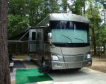 Thanks Vic! I don't have many inside shots just yet, but will take some soon. This big rig is really something. It has everything...a dish washer, washer dryer, dual heat pump basement air systems, a propane furnace for when the heat pumps can't keep up, a combination propane & electric water heater, an 8 KW Onan Generator for when we're Boondocking, Satilite TV, antena TV for when the satilite won't get a singal, dual slide outs, ceramic tile flooring in the kitchen, power awnings to keep the sun at bay, three big televisons.... OK I digress LOL!
