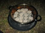 Not that long ago someone posted a picture of an alternative to the expensive Cobb cooker. I thought I'd give it a try. While away with some friends last week I cooked 8 whole potatoes wrapped in foil on the hot coals, turned them regularly, and they were great. Have tried other things - yet to refine my times - too much heat for a cake - or not enough distance from the coals - but it cooked very quickly - just had to cut the burnt bits off!