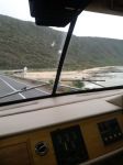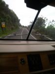 Almost scraping the left rear end on the vertical cliffs, and Nose well out over and on the other side of the white line,