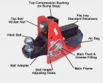 The red section is connected to the 50mm hitch via a piviot pin so the down load is actually compressing the air bag. To fit the unit it looks like you deflate the air bag, raise the towball section which will lower the air bag & the top mount plate to allow the 50mm hitch to slide into the tow bar, then the top plate & air bag will sit under the tow bar. Inflate air bag.