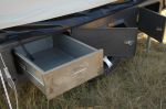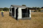 My Camper Trailer is a Adventurer Up North Heavy Duty off road and is only 12 months old. Yes she is big but has plenty of room with slide out s/s kitchen and pantry, King size bed, full 12volt power, LED lighting system throughout, 12volt water pump, 80 litre water tank, 10" electric brakes and quite a few other things as well. As soon as I can I will be installing a 240volt system and along with solar power system. She is a heavy trailer fully loaded but towing her is a dream as she just sit's behind the Musso and a lot of the time you do forget the trailer is there.