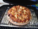 I thought you might like to see the result of, 'Dougwe's Asian/Hawaiian Chicken Pizza' on the new Baby Q Pizza Stone.