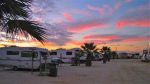 We stayed in Monkey Mire Caravan Park and were very happy with it (see pic, the water is just beyond the far cabin and campervan). In the morning there was just a short walk to see the dolphin feeding plus, the sunsets were amazing. Also, if you are considering the other available caravan parks which are in the nearby town of Denham check which way the wind is blowing first as the it gets to be a pain there sometimes.