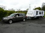 Hi, as this is my first post we would like to say hi to all oue fellow travellers, my wife Adrienne and I have been on the road for three weeks and we have have a 2012 Territory AWD Diesel, towing a 20'6' Legacy. The Ford handles it no problem at all and befor that we had a 19'6' Jayco Sterling again no problems. The vehicle is exceptionally smooth and quiet and a pleasure to ride in and drive. Previously we had a Territory Petrol engine and is was a real gas guzzler. The Diesel is very economical and we could not be happier. We intend to be on the road for at least the next three years minimum. Buy the Ford, but make sure you haggle over the price.