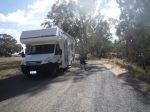 Since leaving Echuca, I travelled to Greens Lake, stopping at 0'Clock, for morning tea beside a river, it was beautiful. Sat there for awhile comtemplating life and the gum trees around me, then off to Greens. There were a few people there camped so I pulled into Dougwe's site, (hope the site fees aren't too high) and set up for my first time free camping by myself. It was a bit blowy so decided I would not put out the awning, which as the night wore on I was glad about that. Set myself up, had some lunch and then went for a walk along the waters edge. It took me about 3 hours to get back to my MH, after stopping and chatting with the other campers there. Met some really lovely people all doing different things with their lives. Two lots were full time on the road, having started only 6 weeks ago. They are loving it and so far no regrets at all. Another couple were out at the Lake for a weeks break from Shepparton. They were interesting to talk too about the lake and the different things that the water is used for, and how the levels are lowered and made higher depending upon weather and irrigation needs. The next couple had had new bits and pieces added to their van so they were trying it all out before heading off on a a longer trip. They knew about the website and were silent observers of a couple of different sites. Really nice people, and once again all ready for a chat and a laugh.