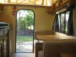 Under the seat closest to the door, he made a big drawer which holds pots, pans, etc. Handy if your cooking outside. Under the other seat is the house battery, thus keeping it's weight closer to the axle.