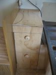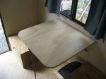 By taking the dining area back to original size, he was able to make a very handy set of drawers beside the bed. Then he made a new table because the original was so very heavy.