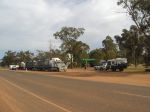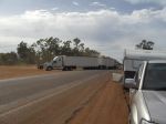 We passed a 4wd & caravan unit which was reduced to match-sticks yesterday on the way here to Charleville....The accident happened when the guys wife took over the wheel and tried to pass the road train pictured below....Firstly she was passing on a down hill straight stretch of road when she realized a motorbike was coming towards her so she braked...then thought...she was to far past the roadtrain so she had to carry on...then decided to speed up and try & get past...when she realized that she wasn't going to make it she hit the brakes then lost control.....