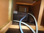 After I have resolved that I will either have to buy some more drinking water (food quality) hose to replace the other hose entirely or get some joiners for where I cut the hose. Some sort of silicone or something (white) has been used around the hoses where they go through the floor. One hose is used to fill the tank, another for the sink hand pump, and the other an overflow pipe for when the tank if full.