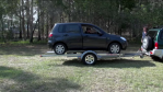 Re towing an auxiliary vehicle. If you are leaving any wheels on the road, be careful if your aux is an automatic. Many autos shouldn't be towed with the drive wheels freewheeling in neutral for more than a limited number of kilometres as it can cause damage to the trans. Check your owner's manual/dealer/mechanic re your specific aux vehicle.