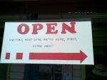 The owners of the store are a friendly mob and their sense of humour is demonstrated by the sign on the veranda as you enter.