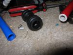 Apparently in the factory before they fit the sink (with tap attached) to the van, they cut a short piece of tubing, heat one end and force it over the end of the mixer tap hose and put a Jubilee clamp on it. then they use one of the black connectors (in the pic) to connect into the van's lines. The insert was found in one of the tubes removed when pulling the old tap.
