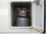 I carry 3 x 2kg bottles. Two bottles are in a separate compartment and the third is stored under the bed. The bed is high and runs east/west and is accessible from inside the MH or thru the rear doors.
