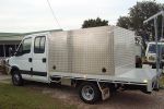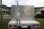 I am building my own side loader to fit ontop of the canopy. The tray length is 3.3mtr, canopy is 2.4mtr leaving 900mm at the rear for my boat trailer & outboard motor which will be covered by the boat when loaded. As my boat is a 3.99 mtr ; the transome will be flush with the end of the tray, & there will be 600mm over the rear of the cab.