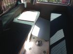 Between the cupboard & drivers seat is enough room to store folding table & 2 chairs for use out in the annexe. Under the bed is all storage, & I can (& usually do) carry enough food to last me & 2 dogs a fortnight (in case I find a nice camp & want to stay a while) plus my clothes, a porta potti, and sundry hobby gear.