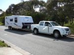 Joy chaser 2 has now been renamed :- to "Just Toddling Along". Just finished our inaugural trip, to Yarrawonga. All went well, towed well behind the BT 50. Only minor issue is that it feels a little late get in the steering, despite having a weight distribution system fitted. Will have to investigate further, and look at load spreading.
