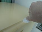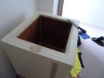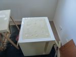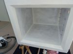 You are right. . A post without pics is next to useless. . So I coated this side (bottom) and closed the gaps with epoxy glue. A plastic spoon was very helpful to make a smooth finish. Not that I'll ever see that again in the finished fridge but it helps me to improve my skills so that later on the visible work will look good.