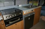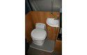 The only difference is the bathroom has now got a privacy surround which these people have recently installed. Now it has a shelf that runs along from the bench with a curtain hanging down. It's lifted up against the wall to use the bathroom.