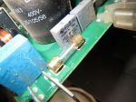 With the 240V disconnected & the 12V dc power to the unit, there should be 12V DC on the 2 pins where the biro is pointing?? The fuse on the board is for 240V AC only. As you have said the unit runs ok on 240V, then the capacitors are ok.