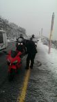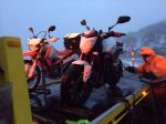 Snowing, Could not see the road, Glad they had yellow lines, Kept us on the road, Two bikes didnt make it, Had to be flatbedded over the top,