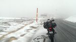 Snowing, Could not see the road, Glad they had yellow lines, Kept us on the road, Two bikes didnt make it, Had to be flatbedded over the top,