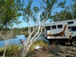 I bought a submersible bilge pump made by Hella for about $50. extended the lead on it and fitted click hose fittings so I can pump out of a creek or dam and via a filter(see earlier post) I get clean water for showers and washing etc. we keep our tanks for drinking quality water only.