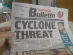 My property and boat are 700m back from the beach and 13m high,on a gps, so I don,t think I will have any problems.The shops and houses on the esplanade are a different story. I phoned H,shoe bay store and while the tide is very high at the moment, it hasn,t crossed the road. There are a few trees down on the waters edge.Tommorrows tide will be the one. The low should cross the coast at about 4am, and the highest tide of the year is at 8.30am. Will ring them tmrow. Hope there is not too much damage.The Townsvill mayor, Jenny Hill was supposed to come and look at prior damage on Friday, but I think she will be too busy. She will have plenty to look at after the blow.1770 , Workmans beach is nice , but windy. Will post as soon as I have news. Bill