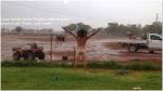They are wombat hides he has hanging on the fence. He is naked from the head down cos that is how the farmers there celebrate the eradication of a few more wombats.